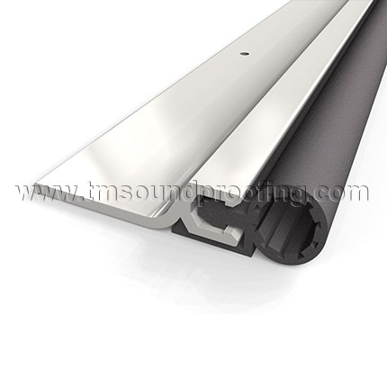 The aluminum track is surface mounted to the edge of both doors in double door set. The casing is punched with elongated slots to allow for some adjustments after installation.